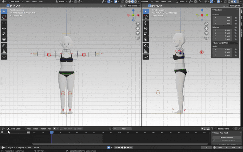 • Go to Pose Mode and make sure you have the Dope Sheet > Action Editor tab open and click on New to add an animation clip.