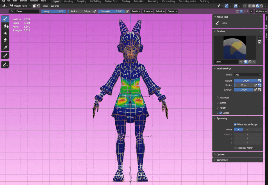Edit a bone’s influence in Weight Paint.