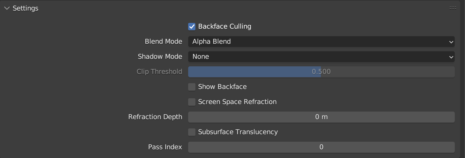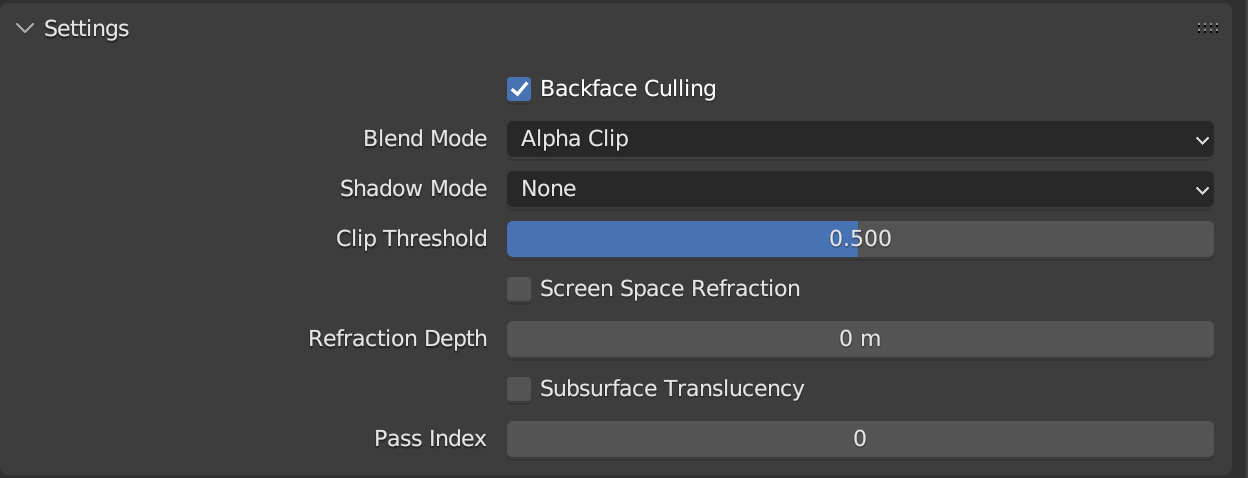 - Alpha Clip: Alpha Clip render absolut values being 0 or 1 given a clip threshold of a grayscale value. The previous color will be overwritten by the surface color, but only if the alpha value is above the Clip Threshold value.