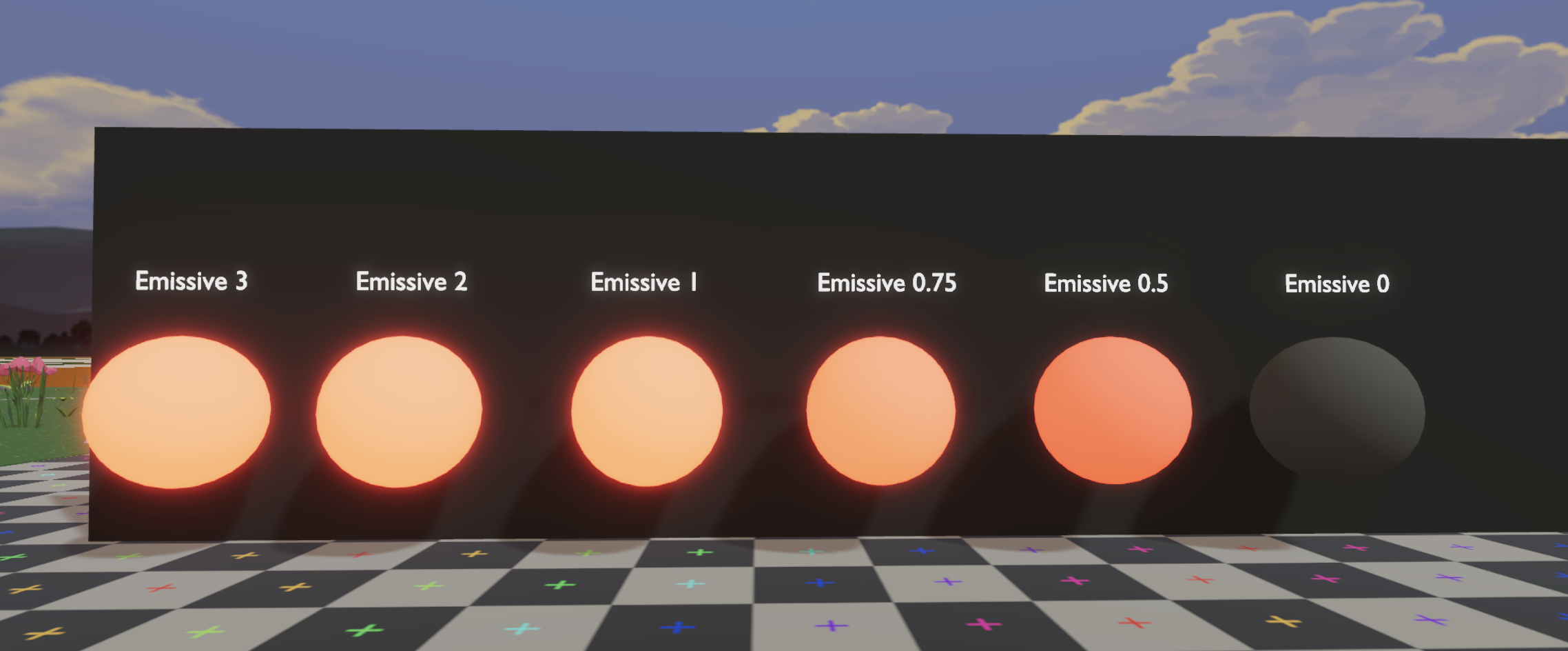 You can also make a material emissive. Emissive materials cast their own light. Note that when rendered, they don’t actually illuminate nearby objects in the scene, they just seem to have a blurred glow around them.