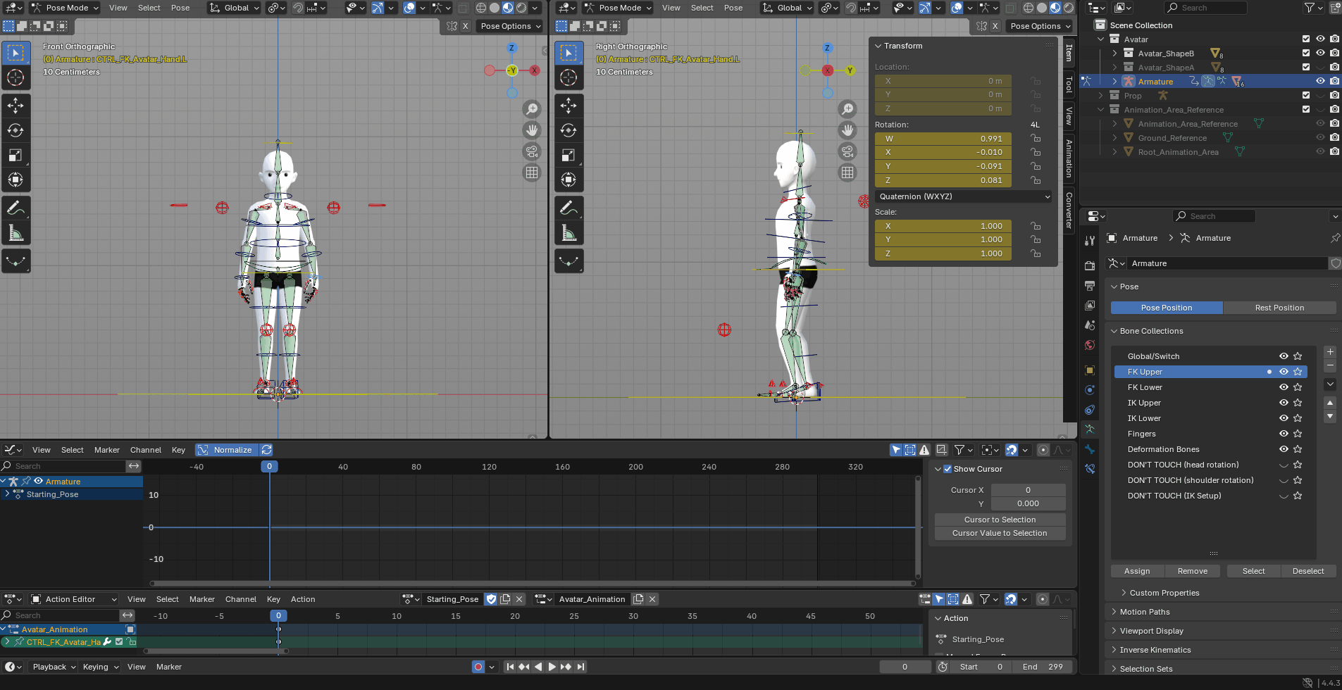 • The emote must have one animation for the avatar and one animation for the prop. Currently multiple animations are not allowed.
