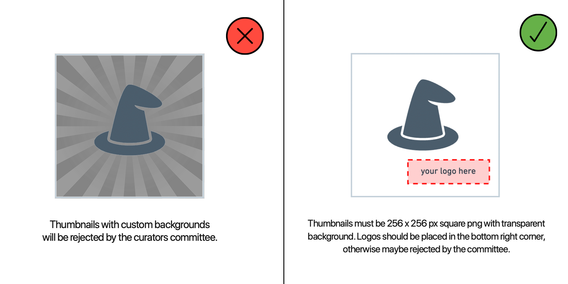 ⚠️ Having a good render of your Wearable is crucial for making it more appealing to potential Marketplace users. It’s important to avoid adding graphics other than the wearable itself because this may cause the Curation Committee to reject it.![]()