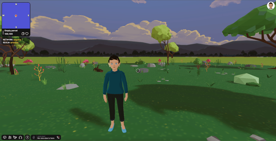 After clicking the See in Decentraland button, the following pop-up is going to appear. Selecting Empty Parcels will teleport you to a place without too much content, which will load faster. Selecting Genesis Plaza will take you to the main plaza.