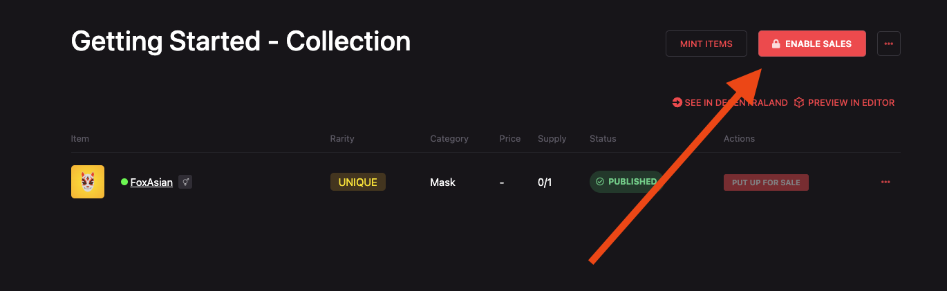 Once you publish your collection and it gets approved, you can then enable the sales on your collection.