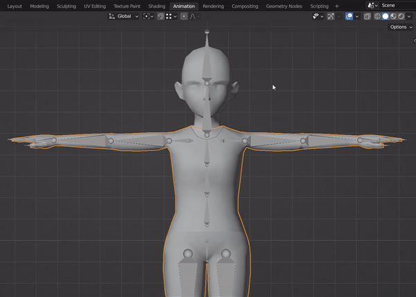 1. But it is also good to keep in mind that you can easily alternate from A-Pose to T-Pose just toggling back the “Edit mode” and “On cage” in the armature modifier.