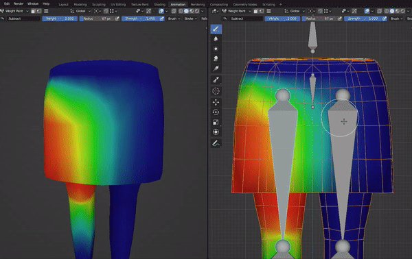 Skin weighting is the process of determining which bones in the avatar’s rigging affect which wearables during an animation.