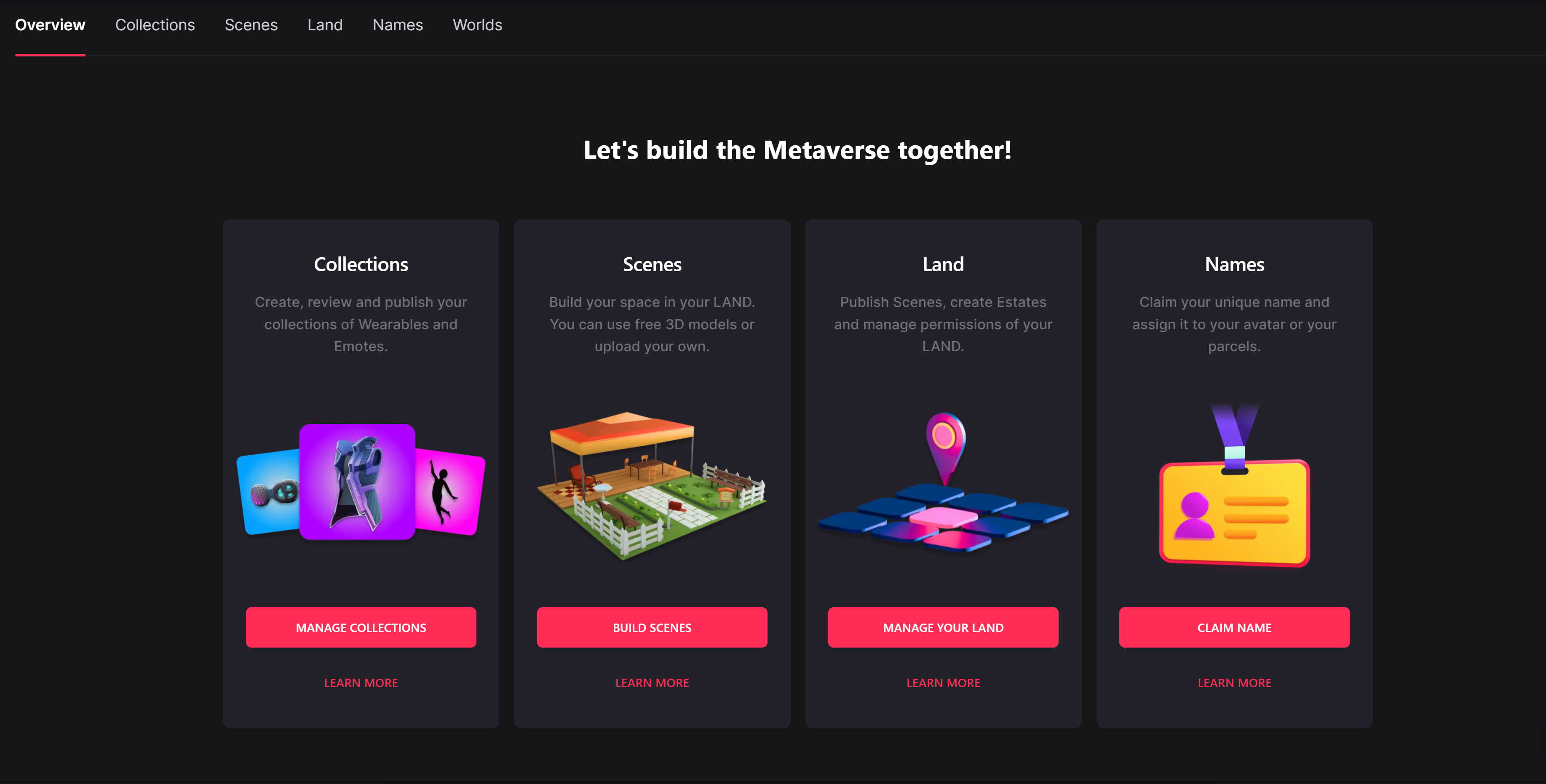 To create your first Estate, you need to own two or more adjacent LAND parcels.