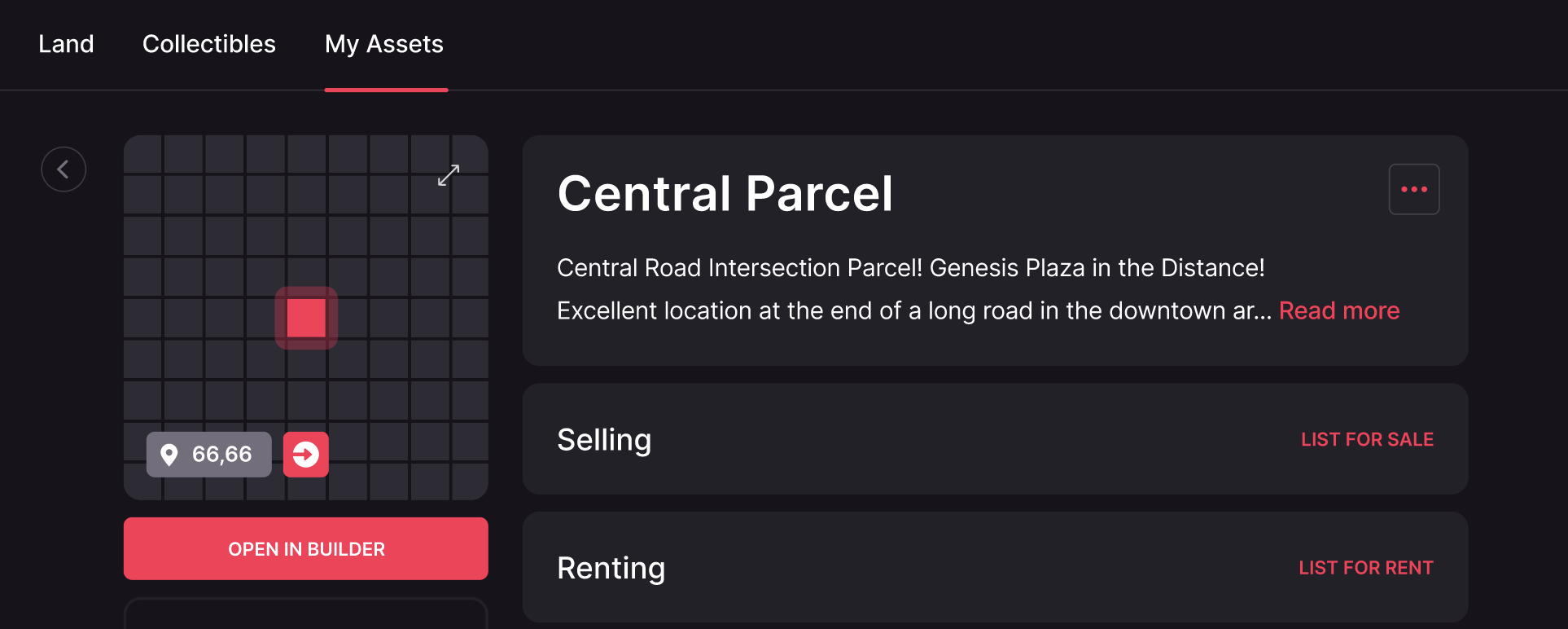 For instance, a DJ could find a cool plot of LAND, rent it and deploy a nightclub to play every Saturday. A University could rent an Estate and build a campus for its students.