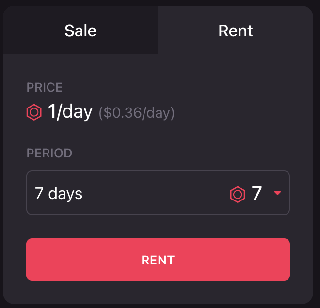 Once you find the LAND you want to rent, you need to select the Rent Period, this is the days you will have the LAND. After selecting the Rent Period, you will see the total price to be paid for the Rent.